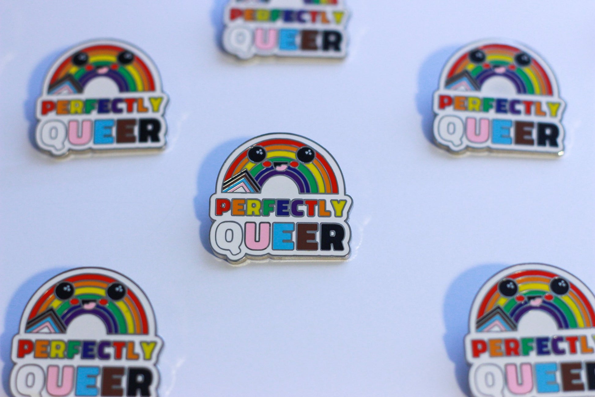 It's back and bigger than ever! Let me be Perfectly Queer... this pin is perfect to express your pride on your shirt, backpack, ITA bag, and more!